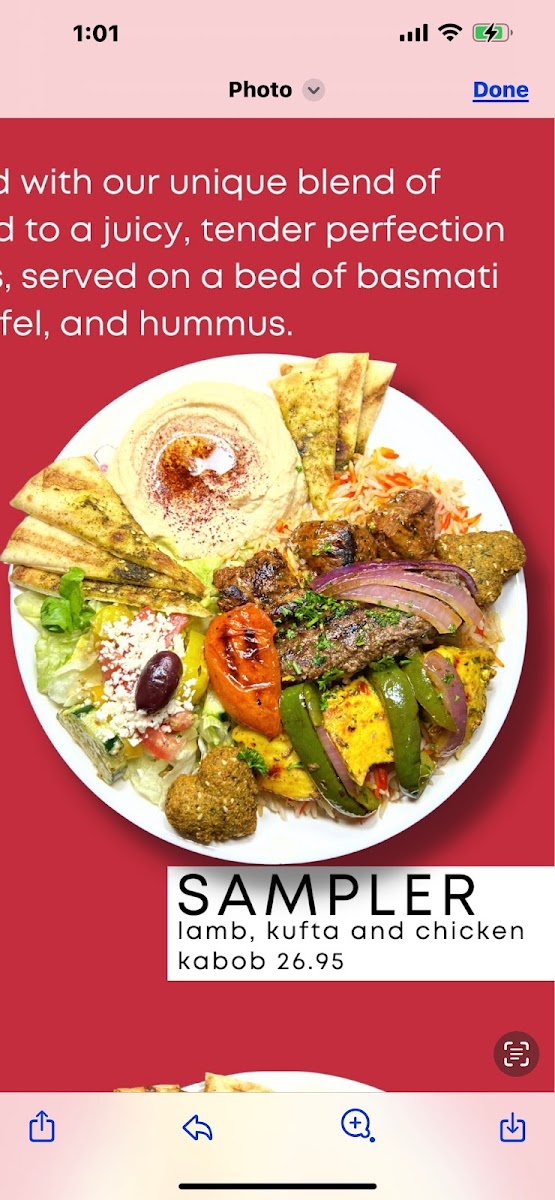 CHICKEN SHAWERMAH WITH BEEF & LAMB GYRO OVER A BED OF HUMMUS